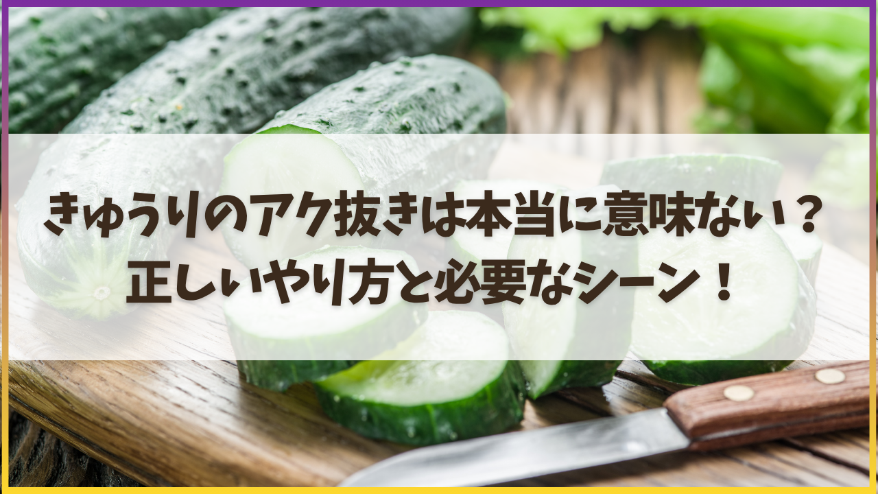 きゅうりを切るとき、「アク抜きは意味ないのでは?」と考える方も多いですよね。